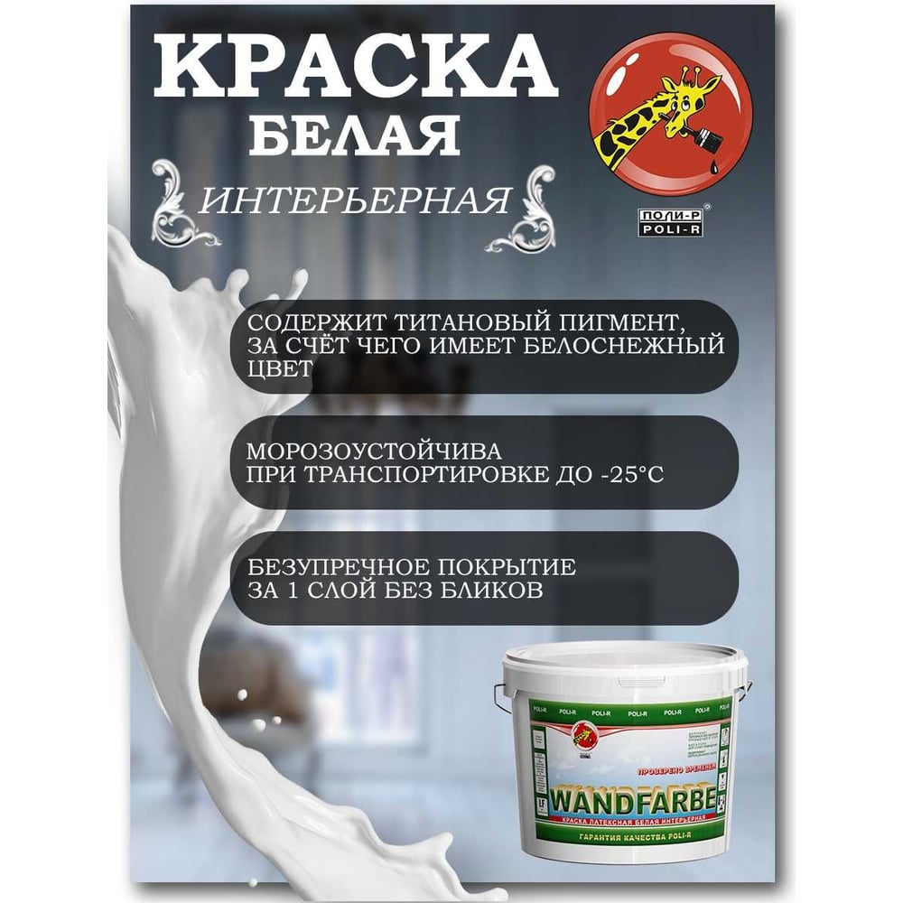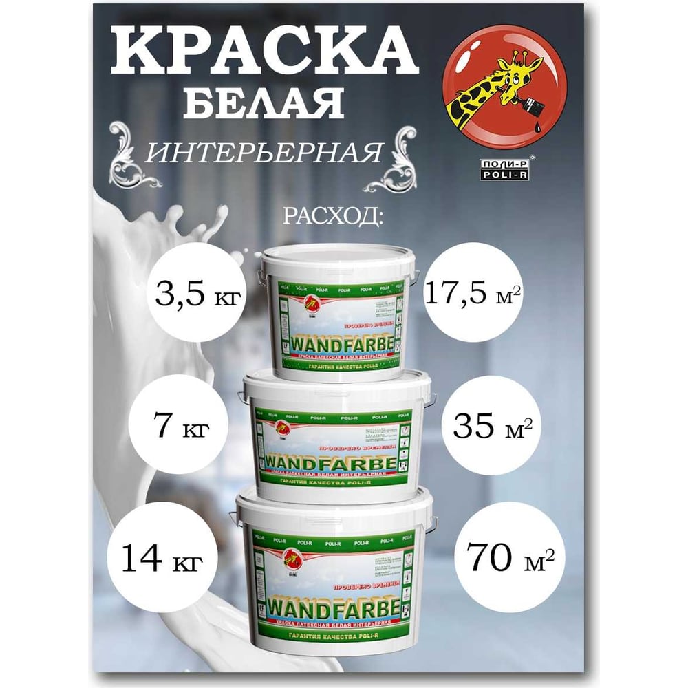 Краска водно-дисперсионная Wandfarbe (3.5 кг; морозоустойчивая) Poli-R 9919
