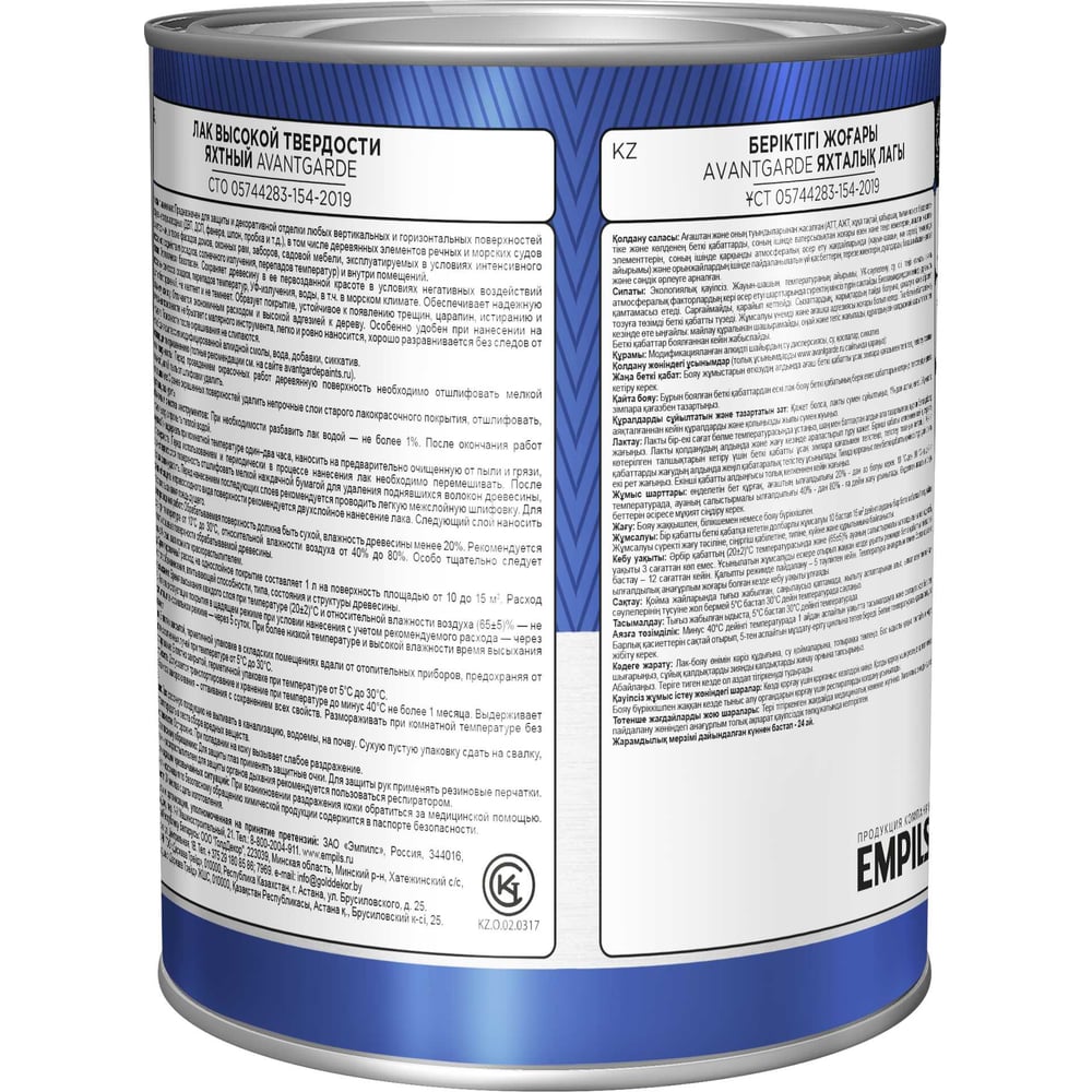 Яхтный лак Avantgarde высокой твердости, глянцевый, бесцветный, 0.75 л, 0.8 кг 77439