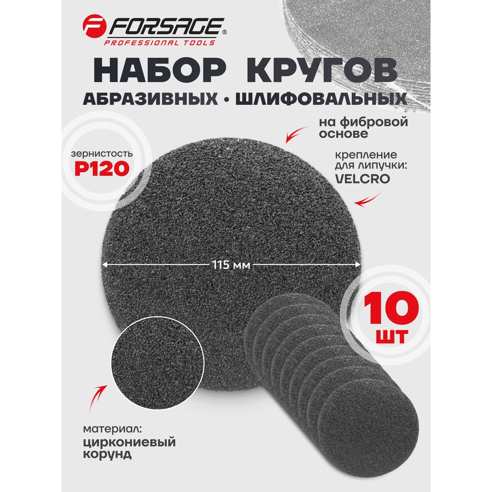 Круг абразивный шлифовальный на фибровой основе (10 шт; 115 мм; Velcro; P120) Forsage F-SD4120S(50890)
