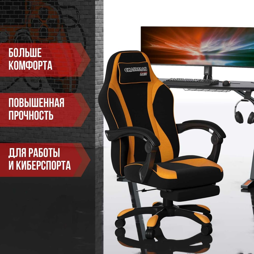 Игровое кресло CHAIRMAN Game 35 ткань черный, оранжевый 00-07089917