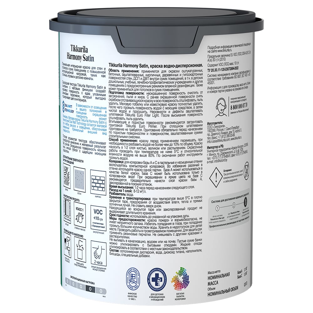 | Система колеровки | по каталогам Tikkurila «Симфония» и «Почувствуй цвет». Для получения пастельных оттенков воспользуйтесь компьютерной колеровкой Tikkurila |