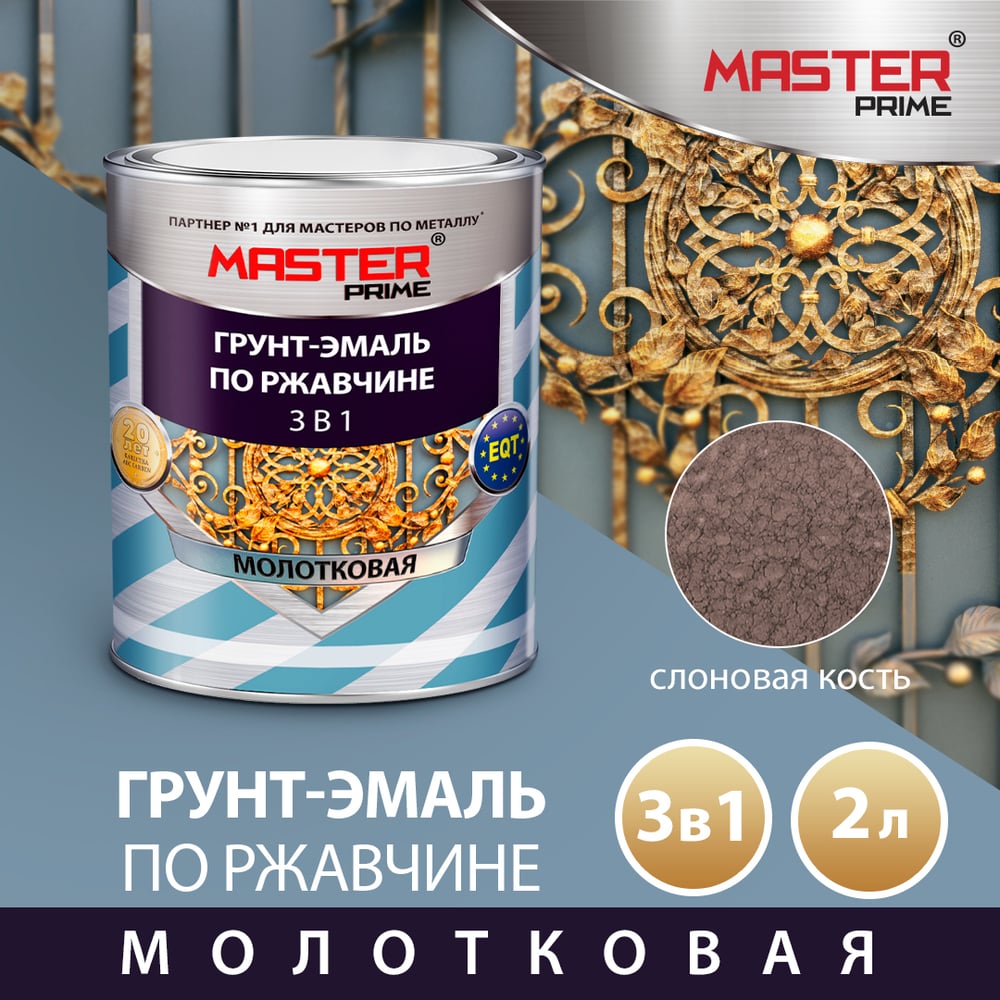 Грунт-эмаль по ржавчине MASTER PRIME 3 в 1 молотковая, слоновая кость, 2 л MASTER 4300012013