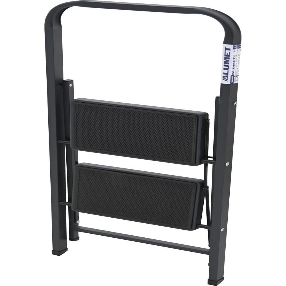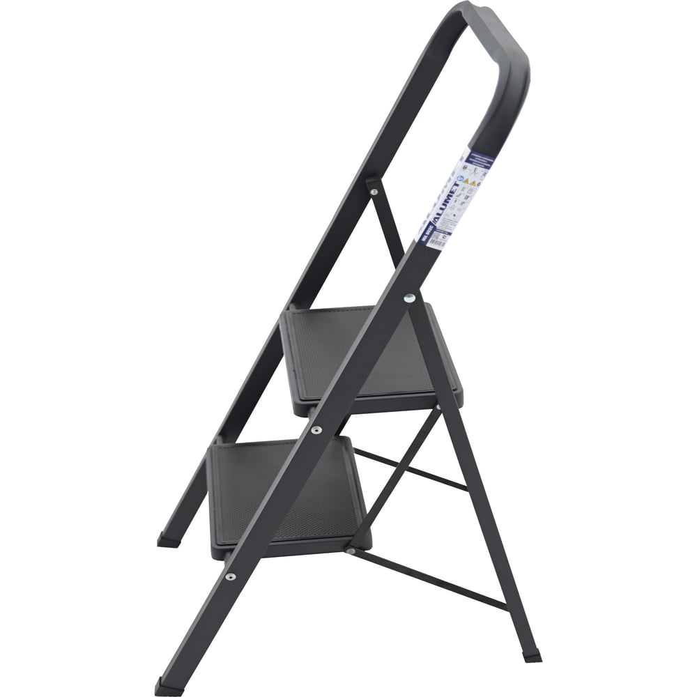 Стальная стремянка Алюмет с широкими ступенями с противоскользящими накладками 2 ступени. Серия MK 802C