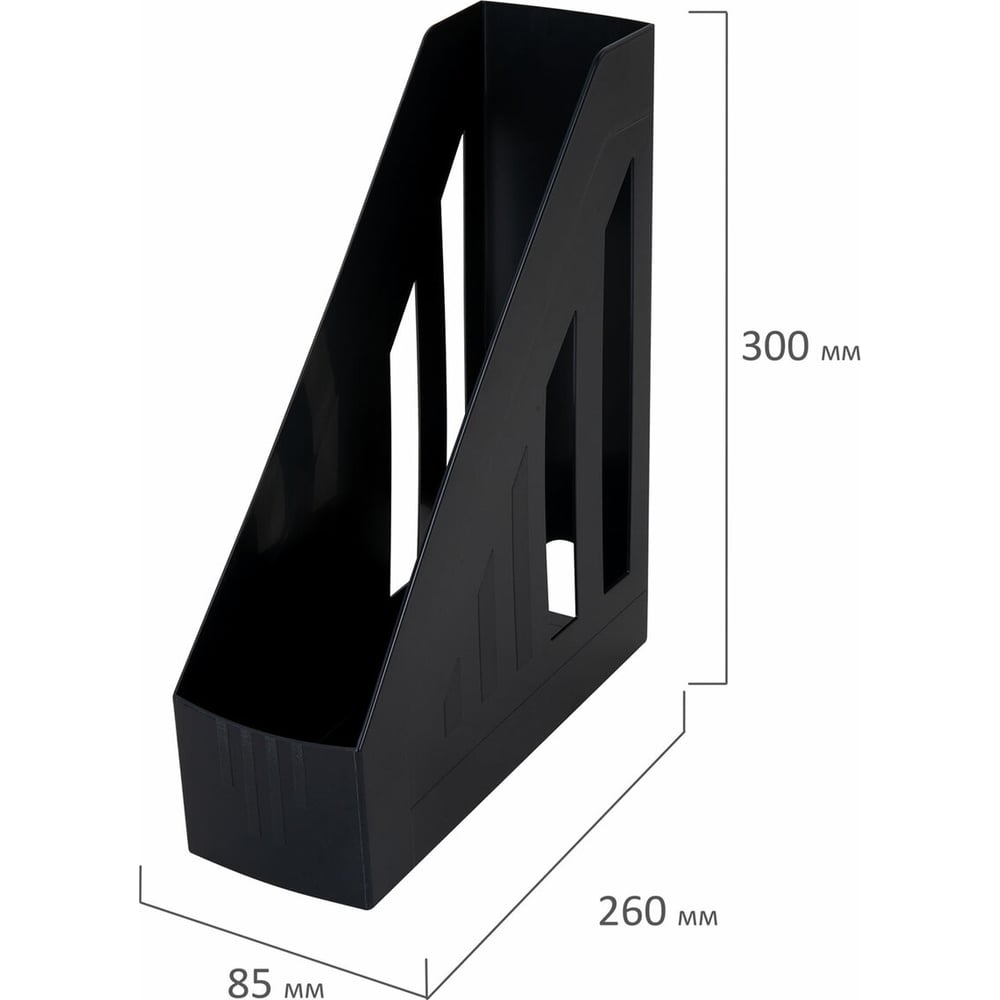 Вертикальный лоток для бумаг BRAUBERG "Contract" 260х85х300 мм, отверстия на торцах, черный 230886