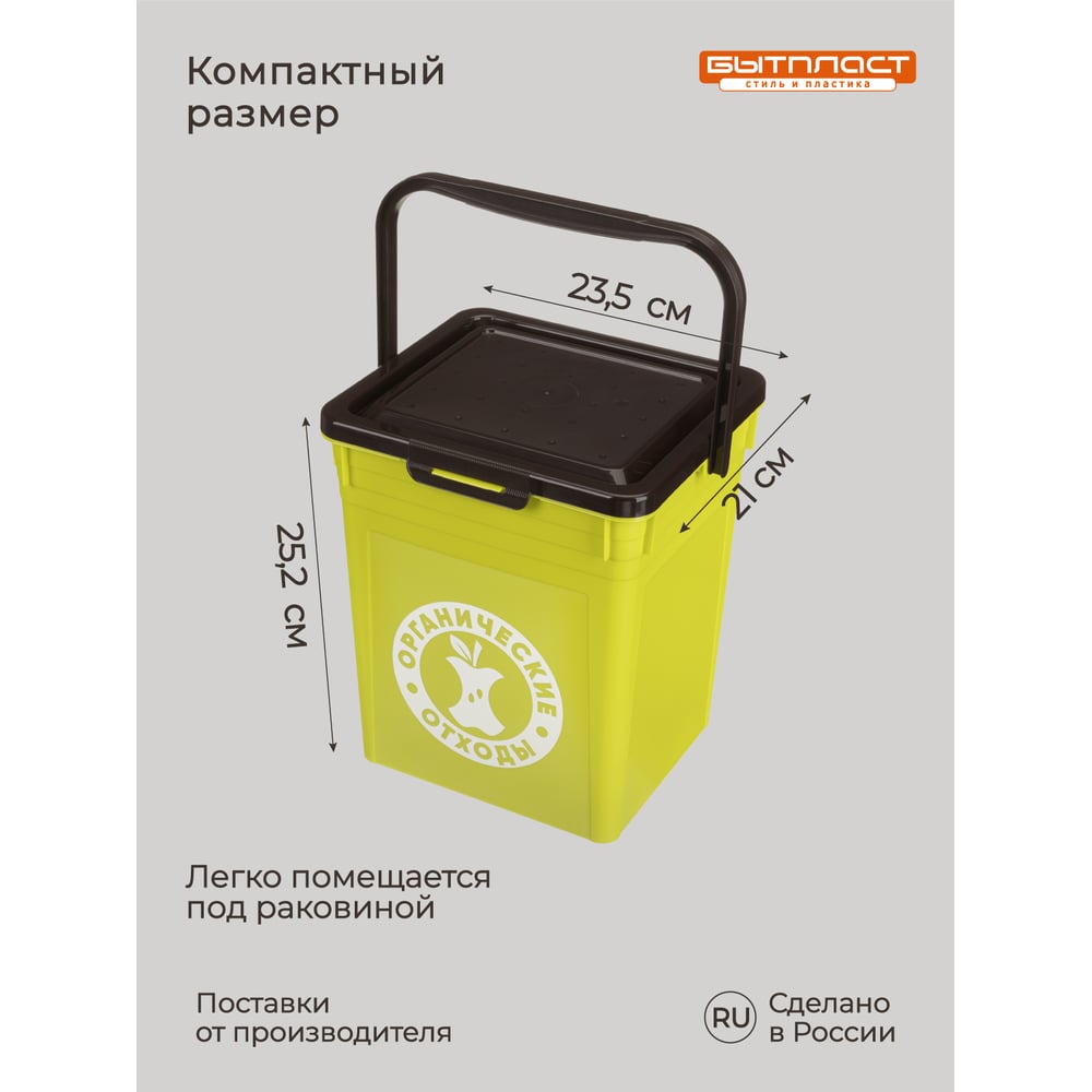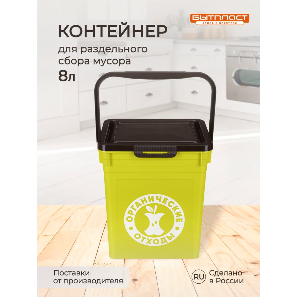 Контейнер для мусора Бытпласт 23.5x21x25.2 см, 8 л, зеленый 434236809