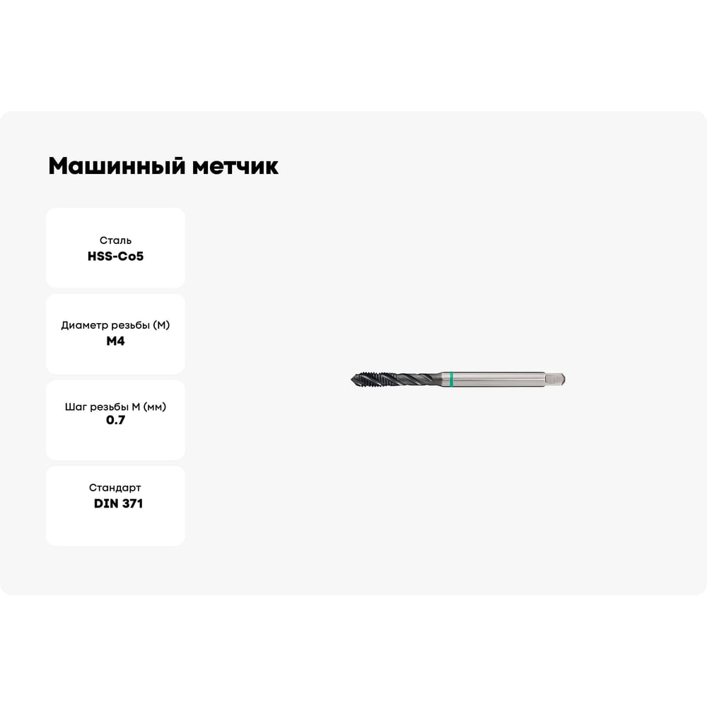 Машинный метчик Promat универсальный, для г/о, М4x0,7 , HSS-Co, DIN371 4000867688