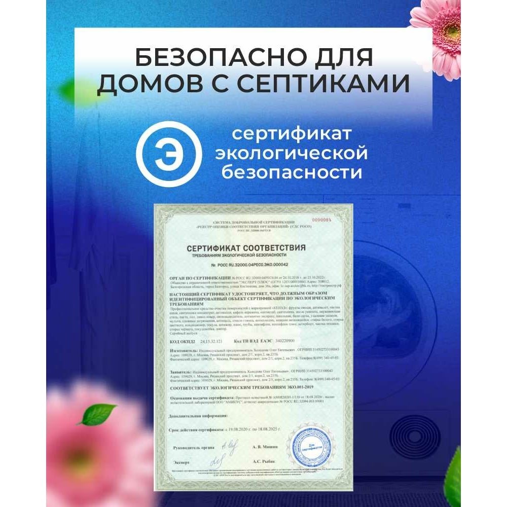 | Расход | 15 мл средства на 3 кг сухих вещей |