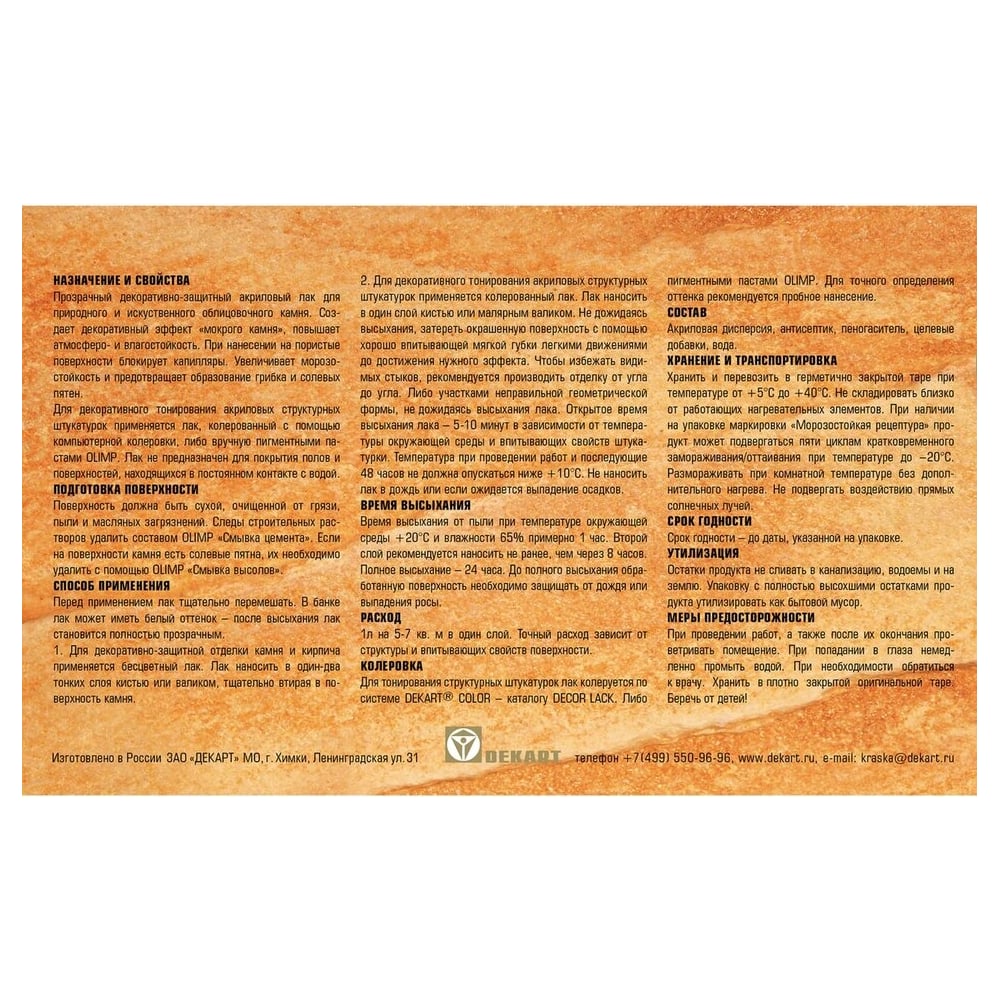 Лак для камня и структурной штукатурки OLIMP 23227
