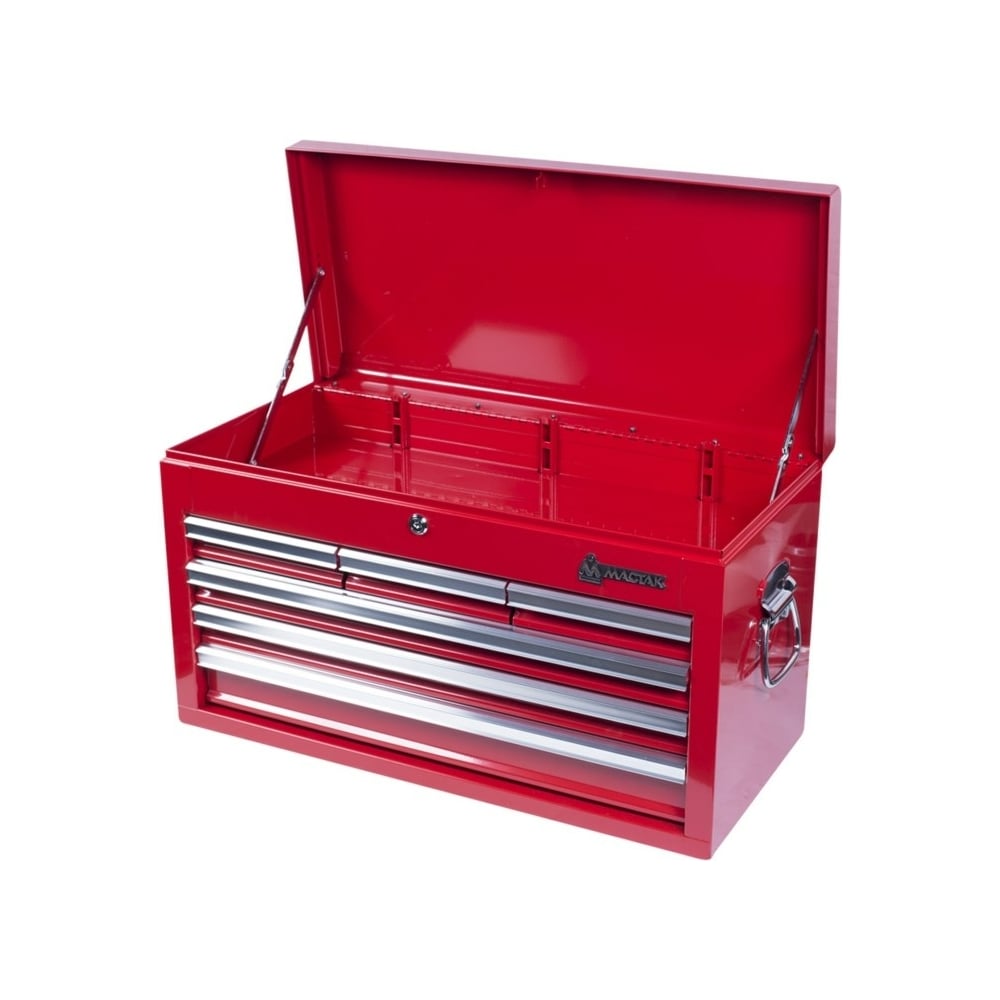 Высота 370 мм Длина 658 мм Материал металл Объем 74 л Ширина 308 мм Цвет красный Класс товара Профессиональный Вес нетто 22.8 кг Назначение для ручного инструмента Размер 25 дюйм На колесах нет Ударопрочный корпус нет Форм-фактор ящик (кейс) Материал замка металл Материал ручки металл С выдвижными секциями нет С выдвижными полками да С лотками да С органайзером для крепежа и мелких деталей нет