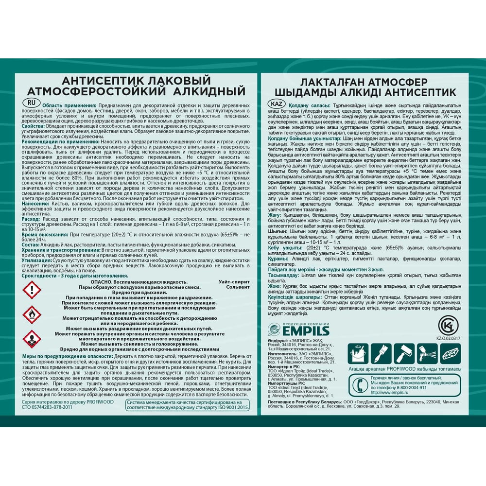 | Состав | Алкидный лак, растворитель, биоцидные добавки, светостойкие пигменты, специальные добавки |
