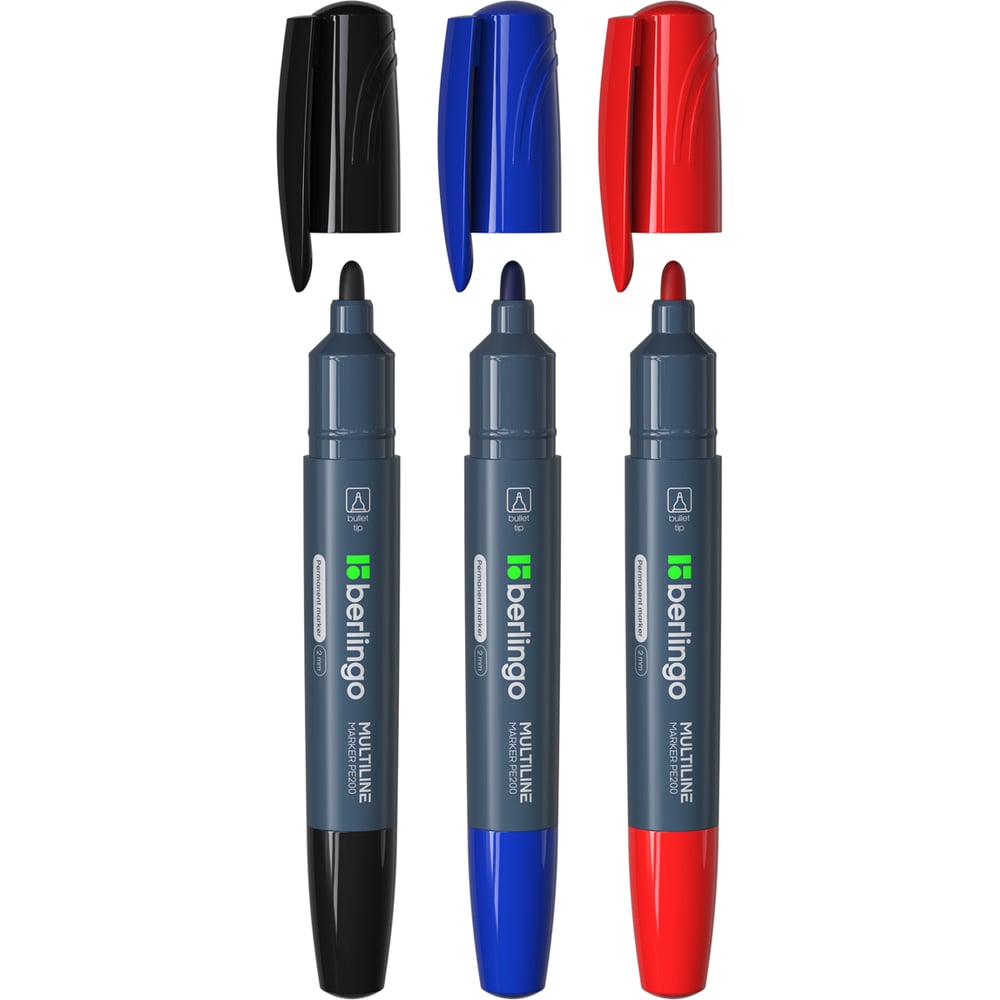 Набор перманентных маркеров Berlingo "Multiline PE200" 03цв., пулевидный, 2,0мм, европодвес, 1 шт. BMc_32409