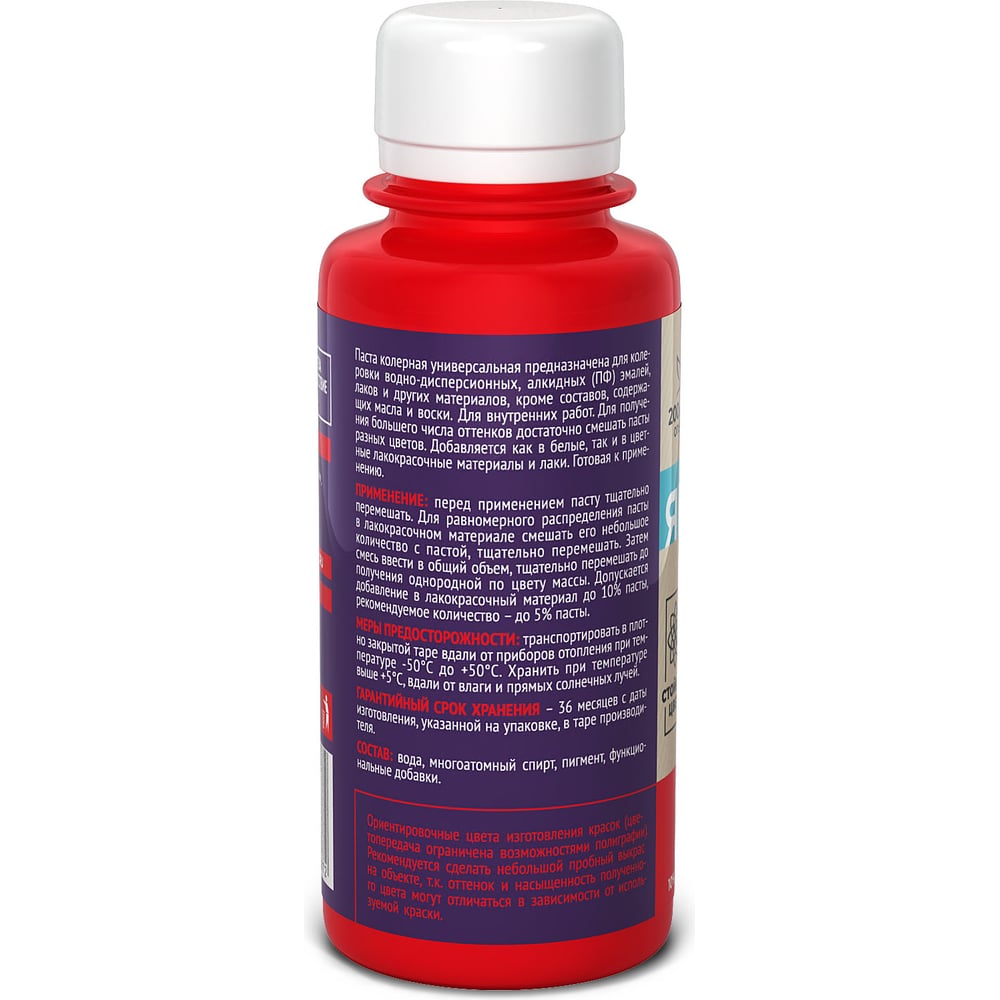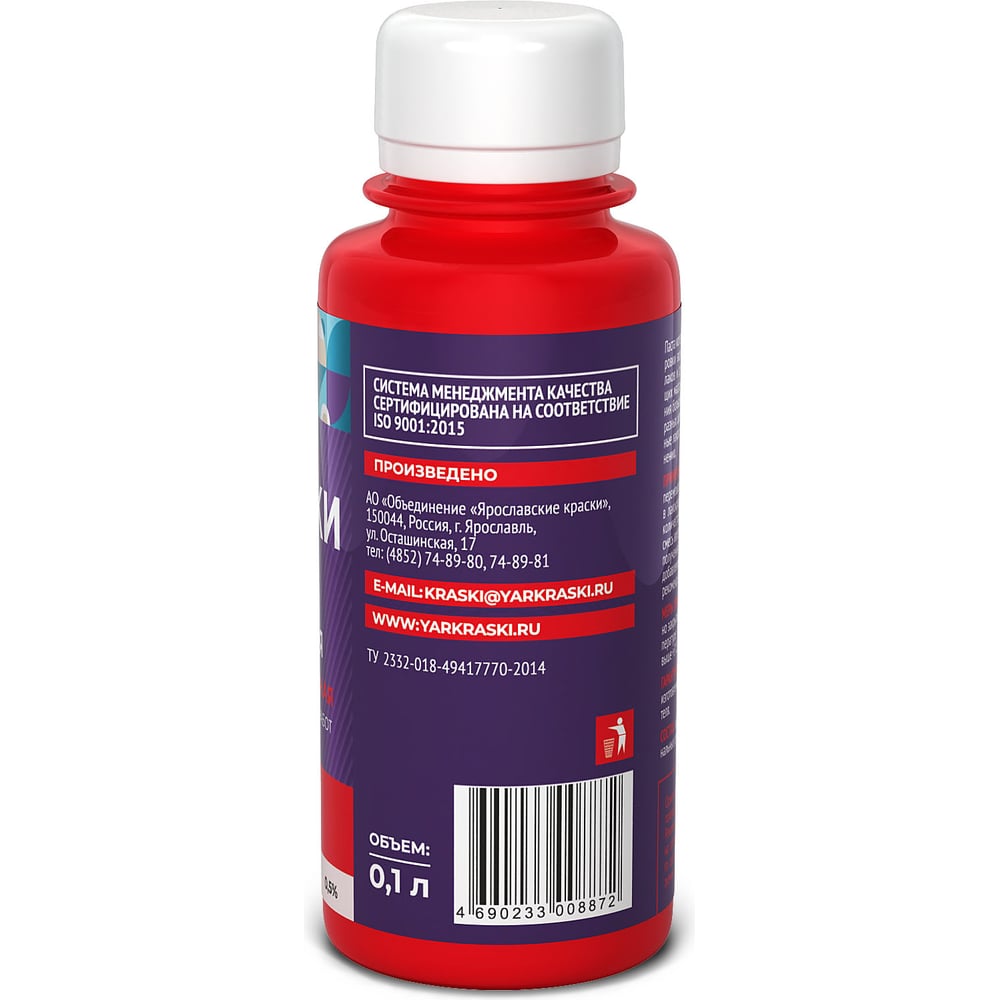 Универсальная колерная паста ЯРОСЛАВСКИЕ КРАСКИ красный, бутылка 0,1 л О04106