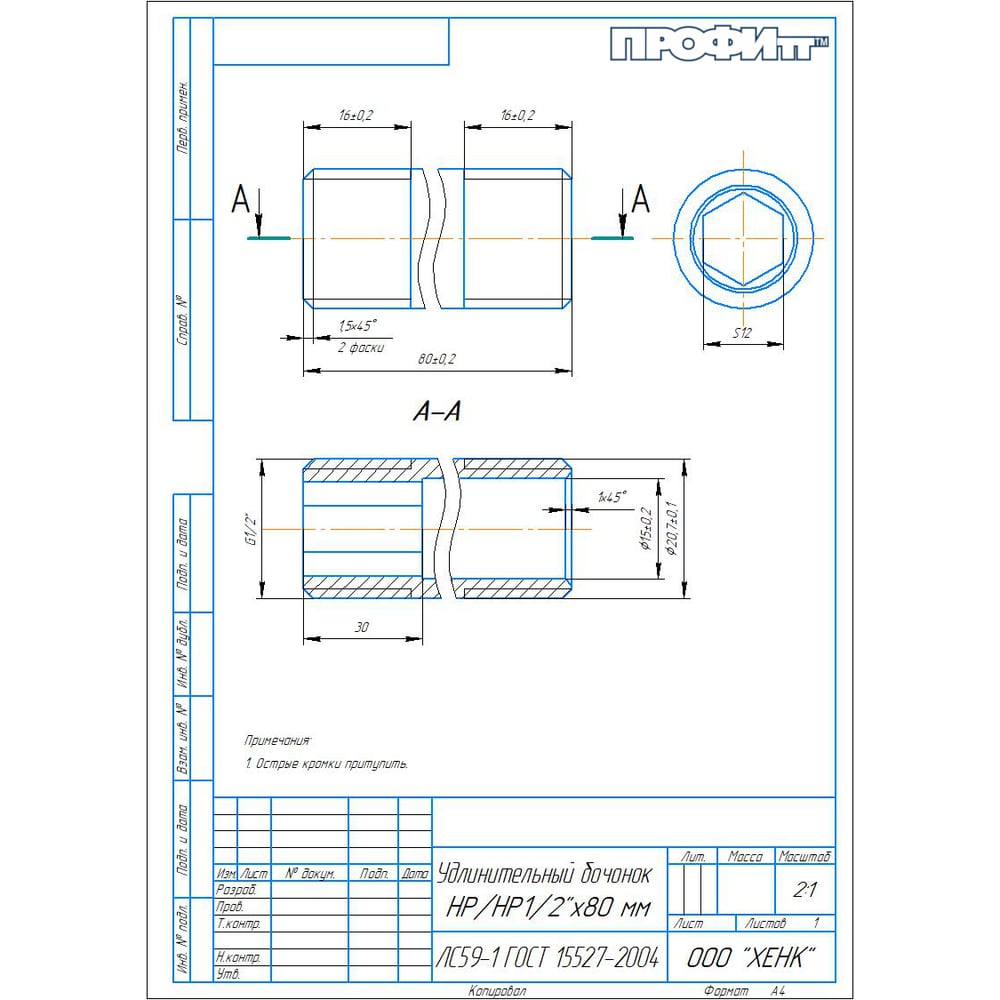 Удлинительный бочонок Профитт НР/НР 1/2" х 80 мм, никелированная 1648673
