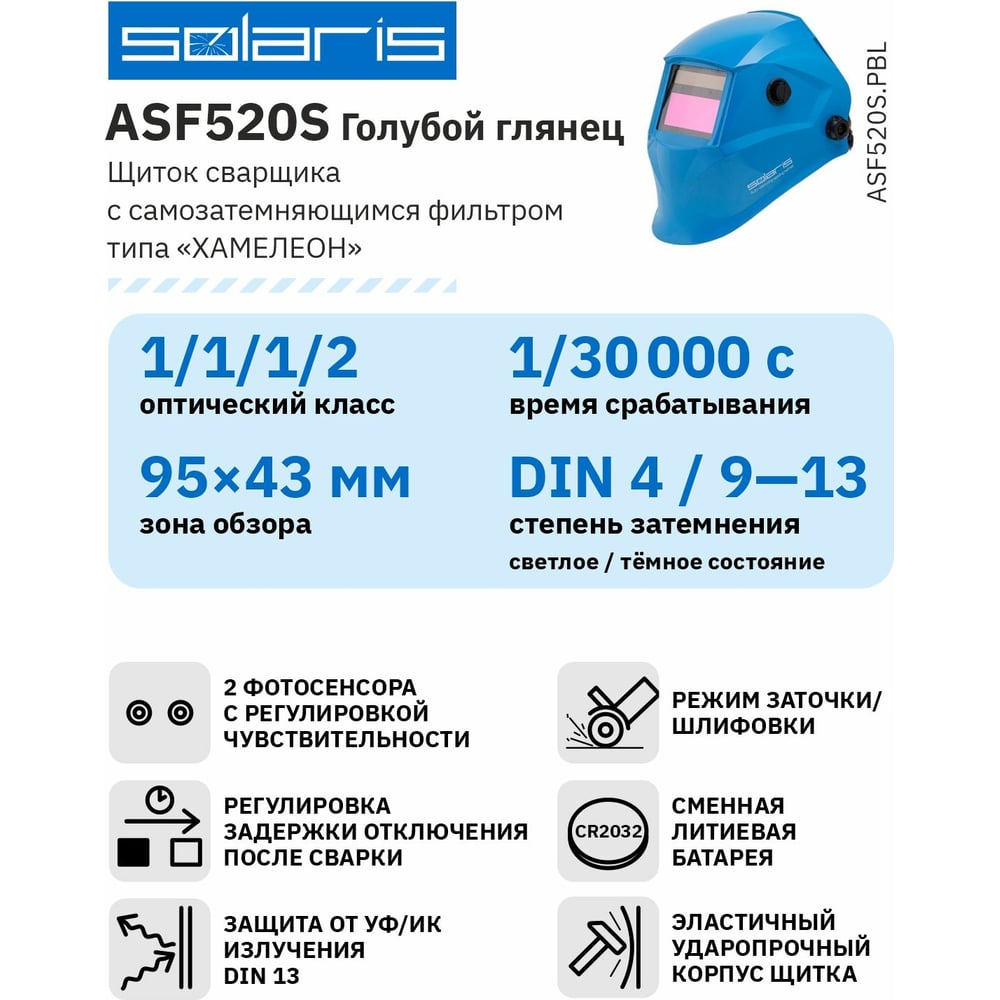 Маска сварочная хамелеон голубой глянец ASF520S SOLARIS ASF520S.PBL