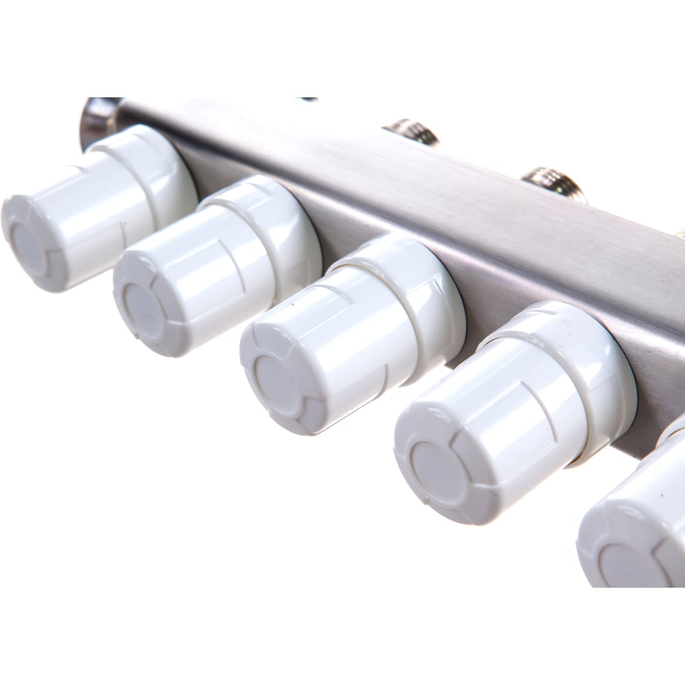 Материал нержавеющая сталь Вид коллектор регулируемый Наличие сервопривода нет Межосевое расстояние отводов 50 мм Мах рабочее давление 10 бар Количество присоединений 5 шт Мах рабочая температура 90 °С Размер входа 1 дюйм Размер отводов 3/4EK-M