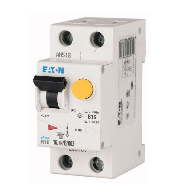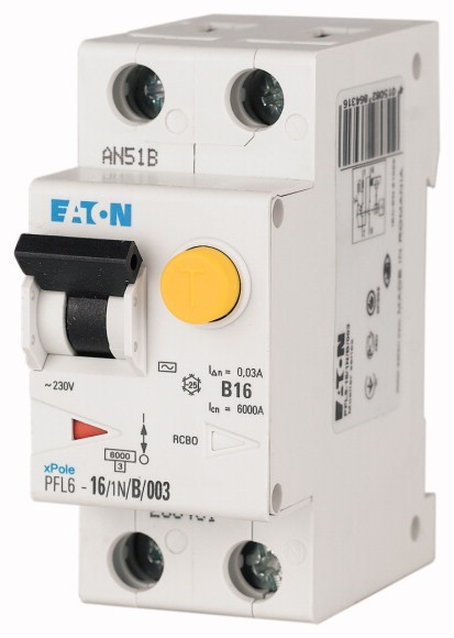 Выключатель автоматический дифференциального тока 2п (1P+N) B 16А 30мА тип AC 6кА PFL6 2мод. EATON 286431