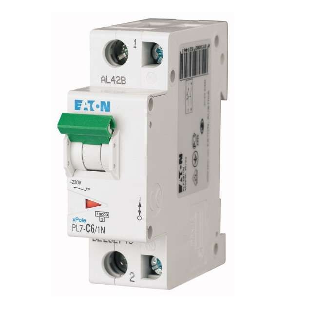 Выключатель автоматический модульный 2п (1P+N) B 6А 10кА PL7-B6/1N EATON 262727