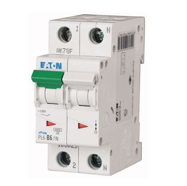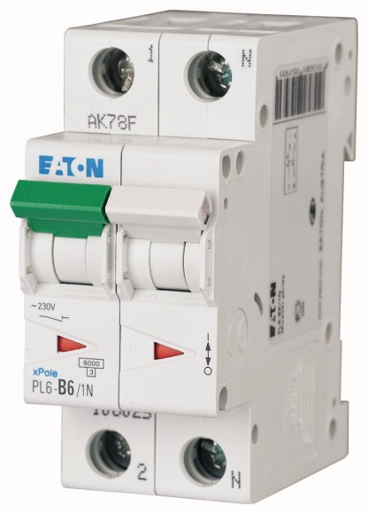 Выключатель автоматический модульный 2п (1P+N) B 6А 6кА PL6 EATON 106025