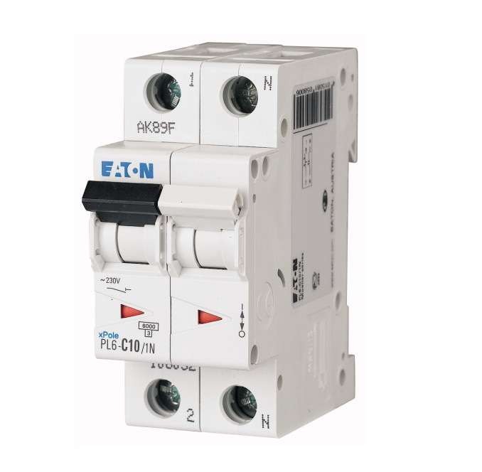 Выключатель автоматический модульный 2п (1P+N) B 10А 6кА PL6 EATON 106026