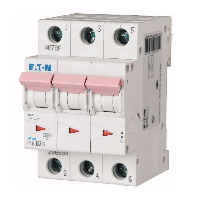 Выключатель автоматический модульный 3п B 2А 6кА PL6-B2/3 EATON 286584