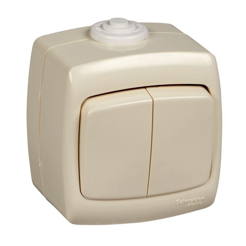Выключатель 2-кл. ОП Рондо 10А IP44 250В 10AX сл. кость SchE VA510-228B-SI