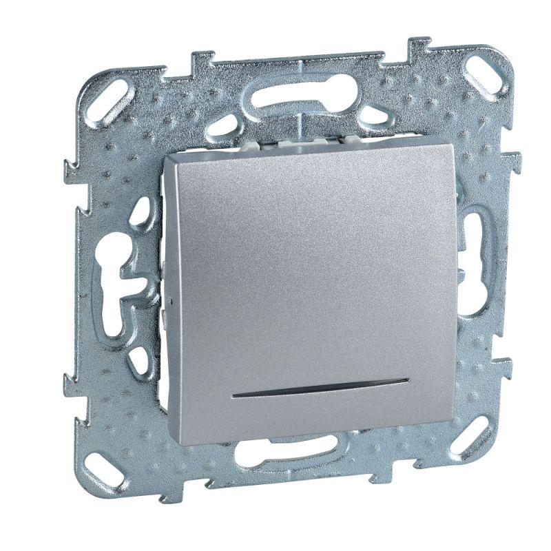 Выключатель одноклавишный Schneider Electric UNICA TOP (алюминий) с подсветкой предназначен для сетей до 250 В на ток до 10 А.