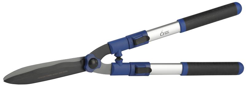 Телескопический кусторез GREEN APPLE предназначен для точного и легкого придания нужной формы кустарникам, снабжен специальными отталкивающими амортизаторами и регулировкой степени прижима лезвий для улучшения комфорта и качества работ.