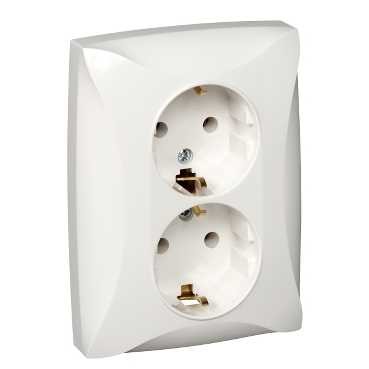 Розетка 2-м СП Дуэт 16А IP20 с заземл. бел. SchE WDE000124