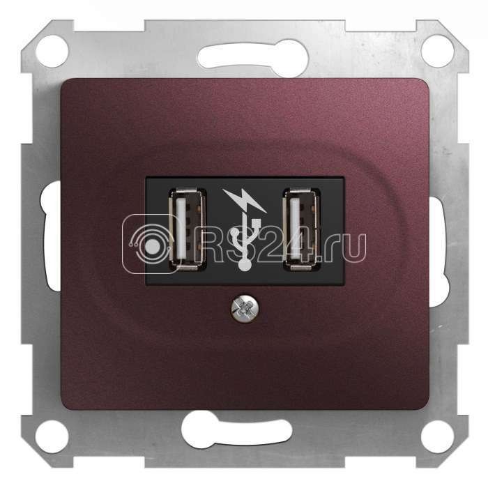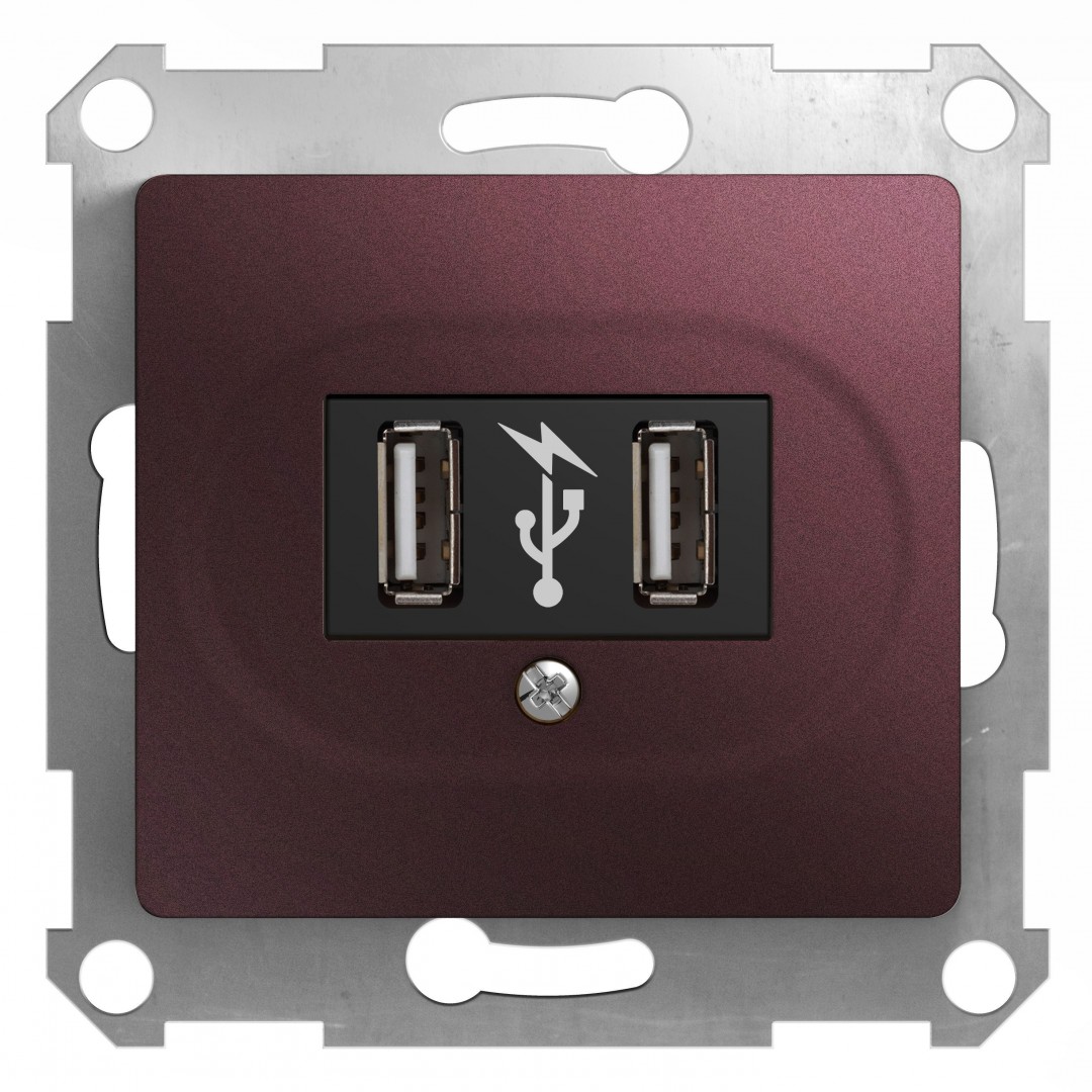 Розетка USB 2-м Glossa 5В 1400мА 2х5В 700мА механизм баклажан. SchE GSL001132