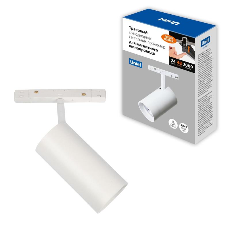 Светильник-прожектор светодиодный трековый ULB-M60-24W/4000K/35 WHITE 4000К 900лм для магнитн. шинопровода бел. Uniel UL-00008741