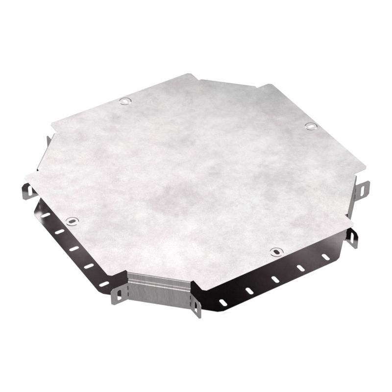 Аксессуары изготовленные из стали с защитным покрытием по методу Сендзимира – это изделия, на которых защитное цинковое покрытие было нанесено на листовую сталь перед изготовлением. Толщина защитного покрытия варьируется от 10 до 22мкм. Климатическое исполнение изделий УХЛ2, что предусматривают эксплуатацию в помещении и под навесом, при температуре эксплуатации от -80 до +150°С. Ответвитель X-образный предназначен для разветвления кабельных трасс в горизонтальном направлении, для перфорированных и глухих лотков. В комплект входит крышка.