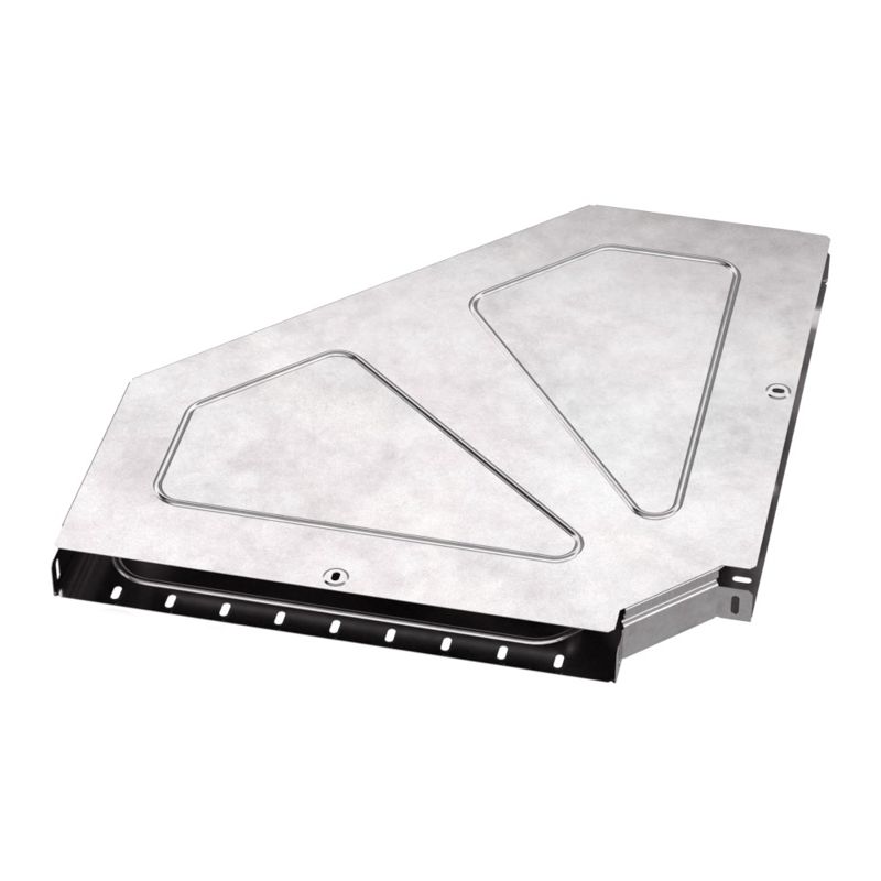 Аксессуары изготовленные из стали с защитным покрытием по методу Сендзимира – это изделия, на которых защитное цинковое покрытие было нанесено на листовую сталь перед изготовлением. Толщина защитного покрытия варьируется от 10 до 22мкм. Климатическое исполнение изделий УХЛ2, что предусматривают эксплуатацию в помещении и под навесом, при температуре эксплуатации от -80 до +150°С. Угол горизонтальный 90 градусов предназначен для поворота кабельных трасс в горизонтальном направлении на 90 градусов, для перфорированных и глухих лотков. В комплект входит крышка.