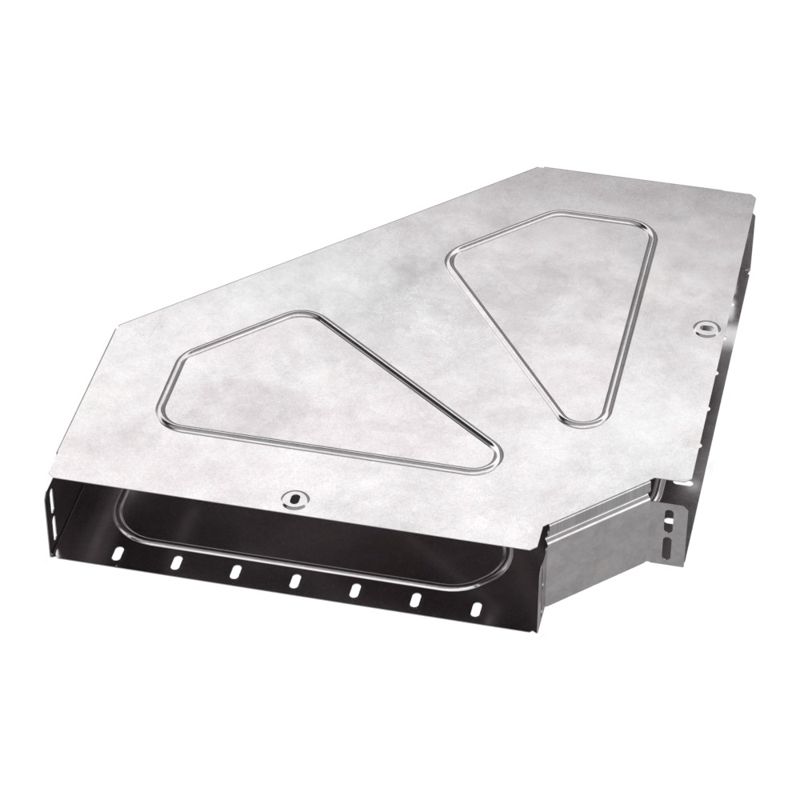 Аксессуары изготовленные из стали с защитным покрытием по методу Сендзимира – это изделия, на которых защитное цинковое покрытие было нанесено на листовую сталь перед изготовлением. Толщина защитного покрытия варьируется от 10 до 22мкм. Климатическое исполнение изделий УХЛ2, что предусматривают эксплуатацию в помещении и под навесом, при температуре эксплуатации от -80 до +150°С. Угол горизонтальный 90 градусов предназначен для поворота кабельных трасс в горизонтальном направлении на 90 градусов, для перфорированных и глухих лотков. В комплект входит крышка.