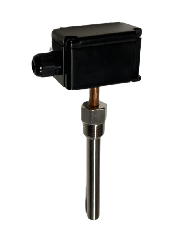 Датчик температуры погружной, диапазон измерения температуры -50…+150°С, выходной сигнал NTC10K, длина погружной части 150 мм, с клеммной головкой, с кабельным вводом, в комплект поставки входит гильза 100 мм, степень защиты корпуса IP65, условия эксплуатации -40…+80°С