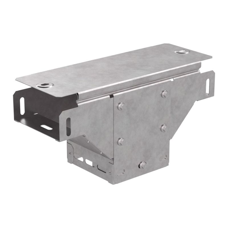 Аксессуары изготовленные из стали с защитным покрытием по методу Сендзимира – это изделия, на которых защитное цинковое покрытие было нанесено на листовую сталь перед изготовлением. Толщина защитного покрытия варьируется от 10 до 22мкм. Климатическое исполнение изделий УХЛ2, что предусматривают эксплуатацию в помещении и под навесом, при температуре эксплуатации от -80 до +150°С. Применяется для обеспечения полноразмерного ответвления горизонтальной кабеленесущей системы из лотков металлических в вертикальном направлении.
