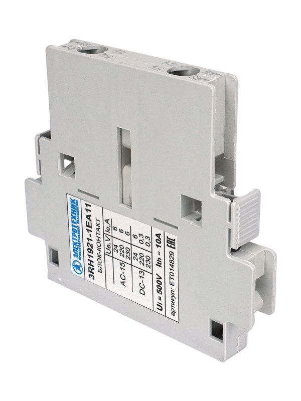 Блок-контакт 3RH1921-1EA11 1НО+1НЗ для контакторов типоразмеров S0…S3 боковой винт. клеммы IP20 Электротехник ET014829