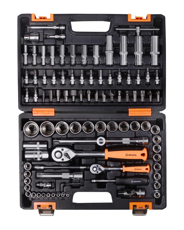 Набор инструментов АВТО 1/2дюйм 1/4дюйм CrV в кейсе 94 предмета Вихрь 73/6/7/7