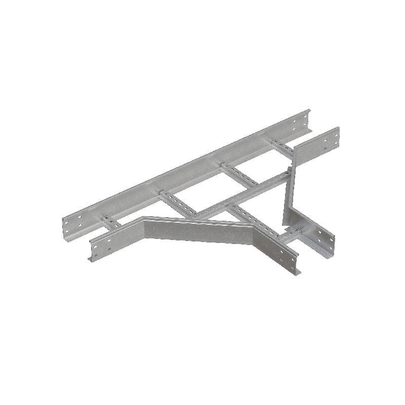 Т-отвод лестничный позволяет придерживаться заданных радиусов изгиба кабельной трассы при монтаже. Модификация изделия используется для отвода от кабельной трассы под углом 90 градусов. Элемент рекомендовано применять c металлическим лестничным лотком шириной 500 мм и высотой борта 100 мм. Изделие оцинковано методом горячего погружения согласно ГОСТ 9.307-2021 и используется для монтажа в помещениях с высокой влажностью и низкой загрязненностью, под открытым небом и в слабокоррозийной среде, в соответствии с ГОСТ 15150-69. Т-отвод легко монтируется с помощью соединительных пластин и метизов.
