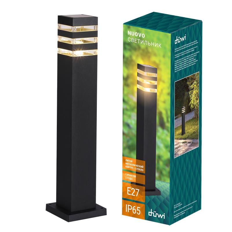 Светильник NUOVO Е27 IP65 90х90х610мм алюм./стекло столб садово-парков. черн. Duwi 24397 7
