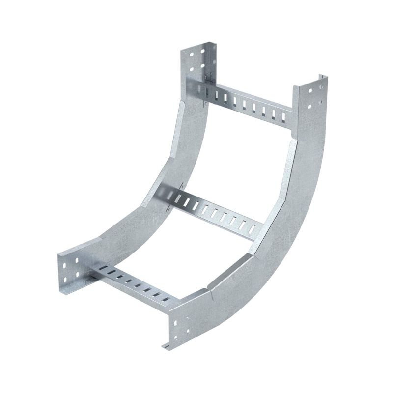 Угол вертикальный внутренний предназначен для организации поворота трассы на основе лестничных лотков с высотой борта 100 мм и шириной основания 400 мм вверх на 90 градусов. Радиус поворота угла - 600 мм. Аксессуар поставляется в комплекте с крепежными элементами и соединительными пластинами, необходимыми для монтажа. Данное изделие представлено в исполнении "Сталь, оцинкованная по методу Сендзимира". Толщина лонжерона изделия – 1,5 мм, а толщина поперечины – 1,0 мм.