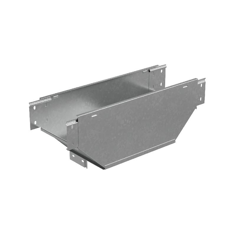 Т-ответвитель переходник вертикальный c разворотом трассы на 90 градусов серии "PLUS", в конструкции которого нижняя часть больше исходной, используется для отвода трассы вниз, при этом разворачивая открытую часть лотка вокруг своей оси под прямым углом. Применяется для организации плавных поворотов и позволяет осуществить переход трассы с исходной ширины лотка 100 мм на ширину 150 мм. Элемент оцинкован методом горячего погружения согласно ГОСТ 9.307-2021 и используется для монтажа в помещениях с высокой влажностью и низкой загрязненностью, под открытым небом и в слабокоррозийной среде, в соответствии с ГОСТ 15150-69. Изделие предупреждает повреждение кабеля при прокладке и позволяет рационально использовать внутренний объем.