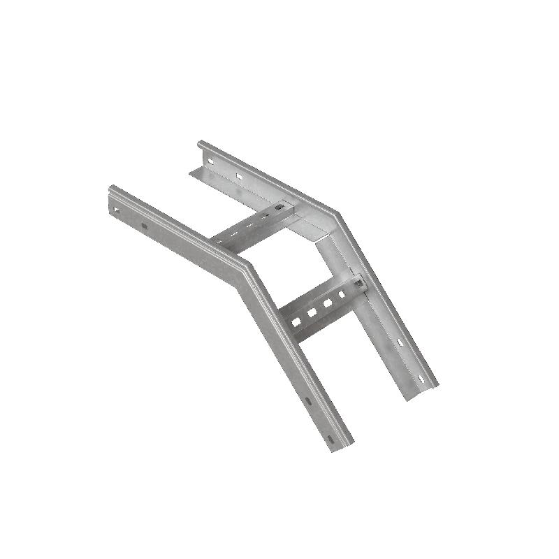 Угол вертикальный внешний лестничный 45 градусов используется для изменения направления кабельной трассы при монтаже. Такой изгиб предотвращает повреждение кабельной трассы при её прокладке. Элемент рекомендовано применять c металлическим лестничным лотком шириной 100 мм и высотой борта 50 мм. Изделие выполнено из стали оцинкованной по методу Сендзимира. Предназначено для применения в местах предпочтительно с сухим климатом, внутри помещений и в слабоагрессивных средах, в соответствии с ГОСТ 15150-69. Соединение между секциями происходит с использованием подходящих крепежных элементов. Для дополнительной защиты элемента кабельной трассы от попадания пыли и мусора используйте крышку.