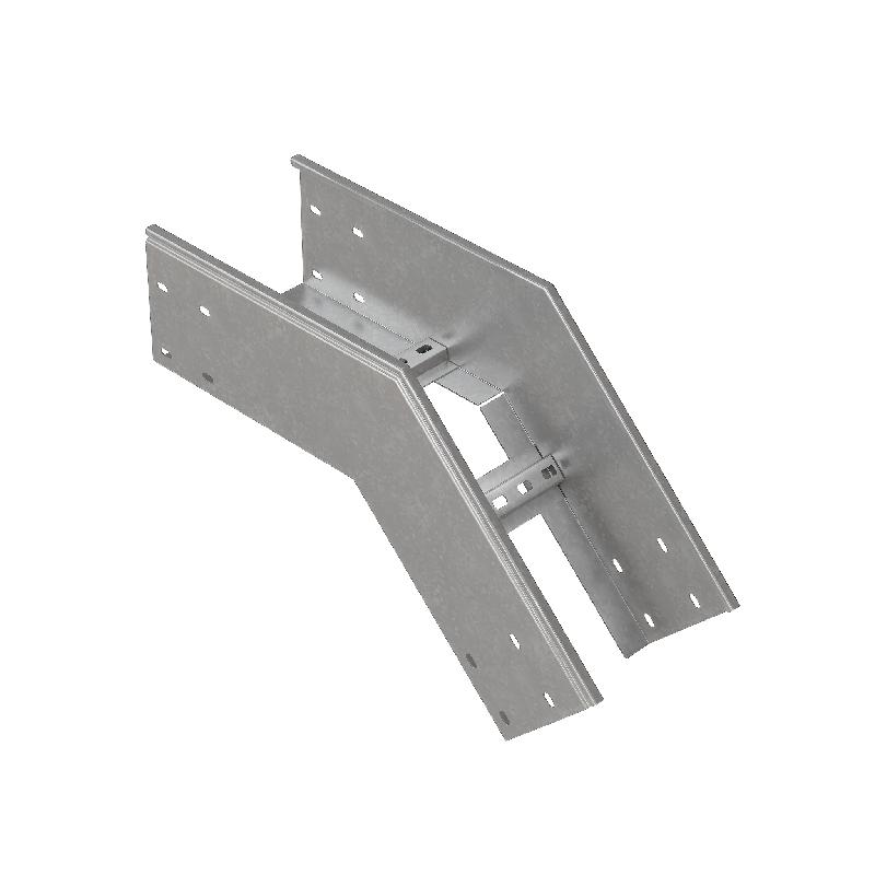 Угол вертикальный внешний лестничный 45 градусов используется для изменения направления кабельной трассы при монтаже. Такой изгиб предотвращает повреждение кабельной трассы при её прокладке. Элемент рекомендовано применять c металлическим лестничным лотком шириной 700 мм и высотой борта 150 мм. Изделие выполнено из стали оцинкованной по методу Сендзимира. Предназначено для применения в местах предпочтительно с сухим климатом, внутри помещений и в слабоагрессивных средах, в соответствии с ГОСТ 15150-69. Соединение между секциями происходит с использованием подходящих крепежных элементов. Для дополнительной защиты элемента кабельной трассы от попадания пыли и мусора используйте крышку.