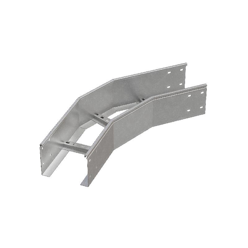 Горизонтальный лестничный угол 45 градусов позволяет выполнить поворот силовых и слаботочных линий в горизонтальной плоскости. Секция подходит для соединения c металлическим лестничным лотком шириной 700 мм и высотой борта 150 мм. Изделие выполнено из стали оцинкованной по методу Сендзимира. Предназначено для применения в местах предпочтительно с сухим климатом, внутри помещений и в слабоагрессивных средах, в соответствии с ГОСТ 15150-69. Соединение между секциями происходит с использованием подходящих крепежных элементов. Для дополнительной защиты элемента кабельной трассы от механических повреждений, попадания пыли и мусора, используйте крышку.