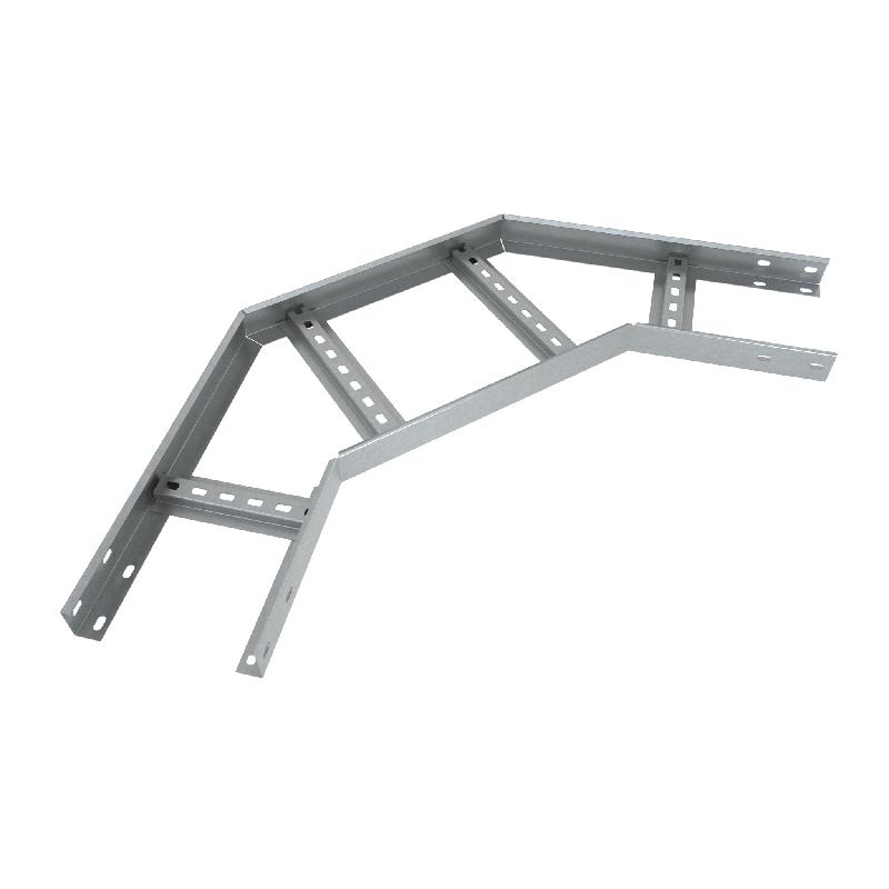 Горизонтальный лестничный угол 90 градусов позволяет выполнить поворот силовых и слаботочных линий в горизонтальной плоскости. Изделие оцинковано методом горячего погружения согласно ГОСТ 9.307-2021 и используется для монтажа в помещениях с высокой влажностью и низкой загрязненностью, под открытым небом и в слабокоррозийной среде, в соответствии с ГОСТ 15150-69. Специальные соединительные лепестки на корпусе секции обеспечивают необходимую жёсткость конструкции стыкового узла и целостность трассы. Для дополнительной защиты элемента кабельной трассы от механических повреждений, попадания пыли и мусора, используйте крышку.