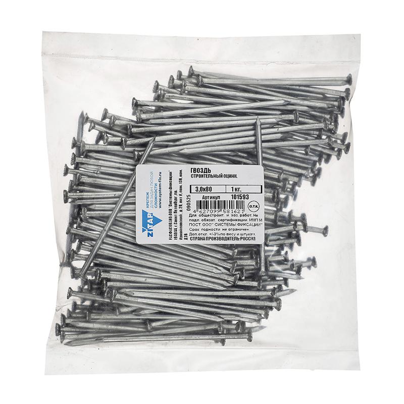 Гвоздь строительный 3х80 оцинк. (уп.1кг) Tech-Krep/Zitar 101593