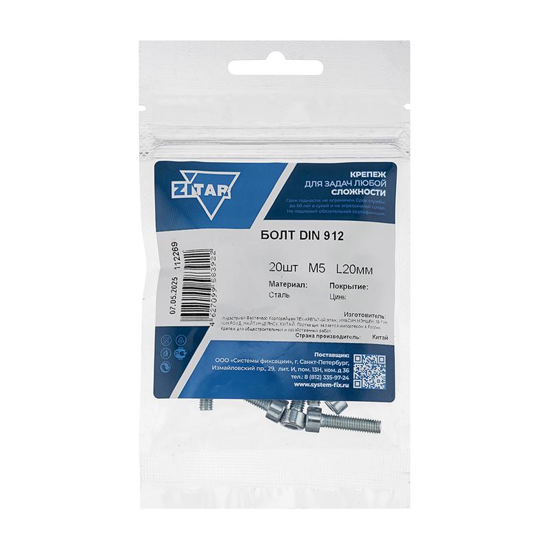 Болт с цилиндрической головкой и внутр. шестигранником 5х20 DIN 912 (уп.20шт) Tech-Krep/Zitar 112269