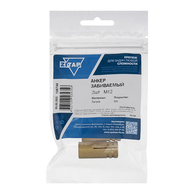 Анкер забивной М12 латун. (уп.2шт) Tech-Krep/Zitar 106749