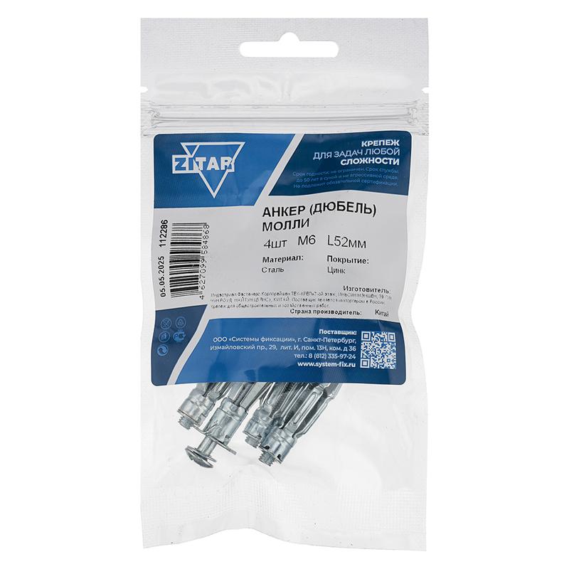 Анкер дюбель Молли М6х52 (уп.4шт) Tech-Krep/Zitar 112286