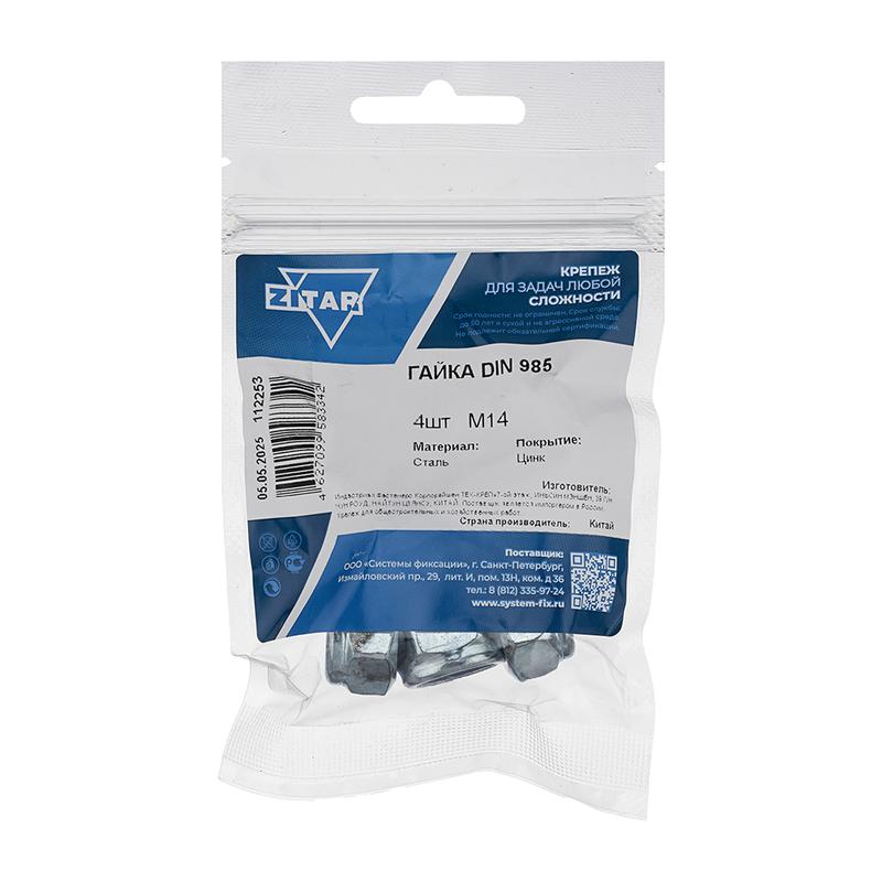 Гайка самоконтрящаяся М14 DIN 985 оцинк. (уп.4шт) Tech-Krep/Zitar 112253